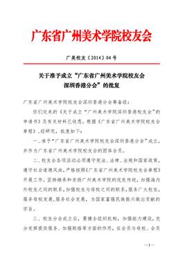 广东省广州美术学院校友会关于准予成立“广东省广州美术学院校友会深圳香港分会”的批复